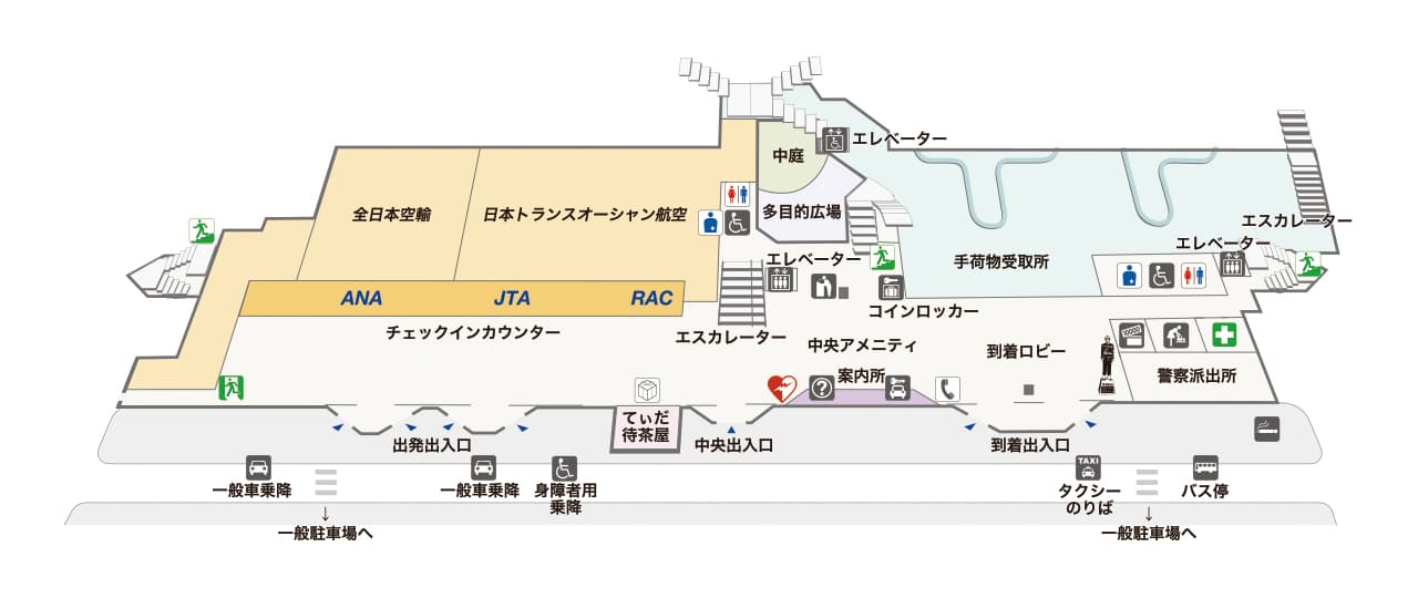 宮古空港に到着後、手荷物受取所を出てすぐの到着ロビーにて弊社スタッフがホワイトボードをもって待機しております。